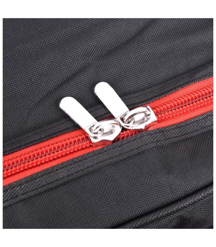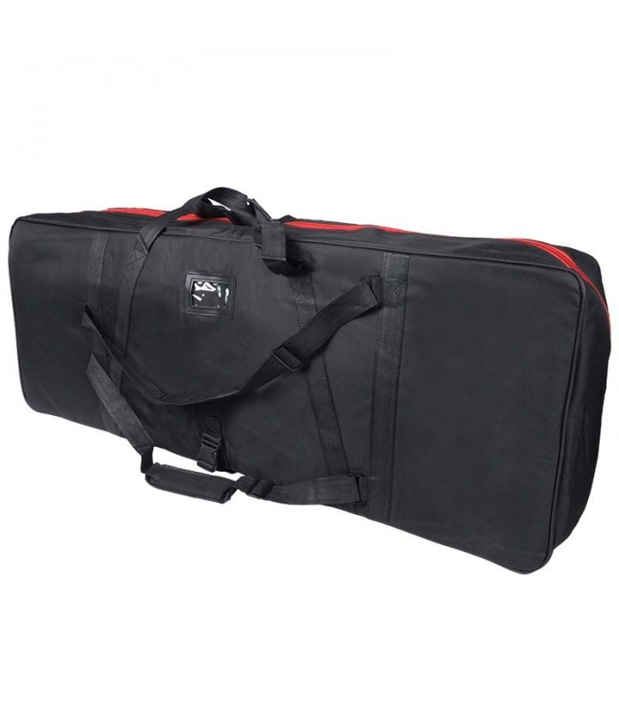 Ochraniacz KBC01 wykonany został ze specjalnej tkaniny technicznej odpornej na wilgoć i rozdarcia. Dodatkowa 7-milimetrowa gąbka usztywniająca pokrowiec tworzy bezpieczny miękki bufor otulający keyboard, dzięki czemu mamy pewność, że nasz instrument jest dobrze zabezpieczony przed uszkodzeniami. Dwie obszerne kieszenie na akcesoria z powodzeniem pomieszczą okablowanie, zasilacz, przewody audio, a także nuty, tabulatury lub teksty piosenek. Elegancji całości dodają czerwone suwaki, które doskonale komponują się z czernią.
