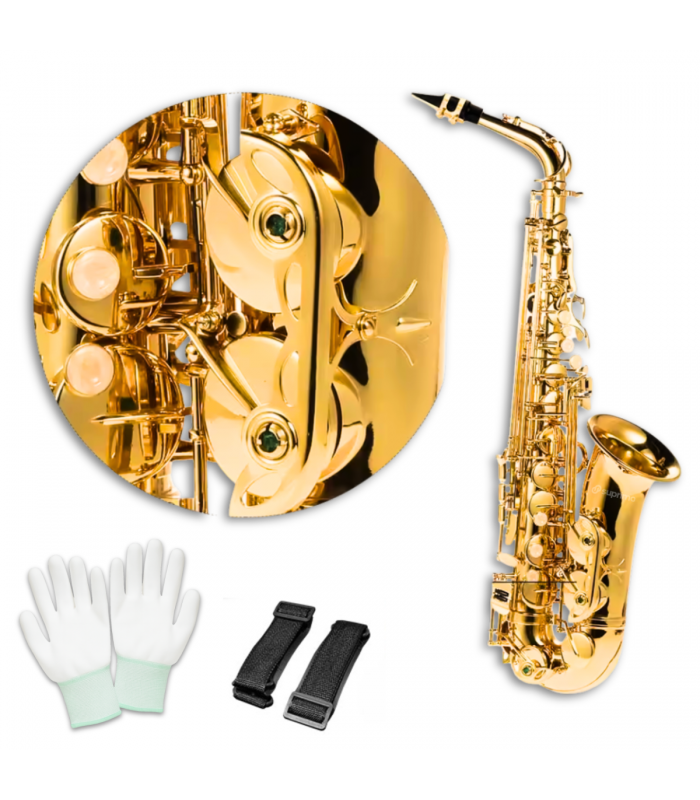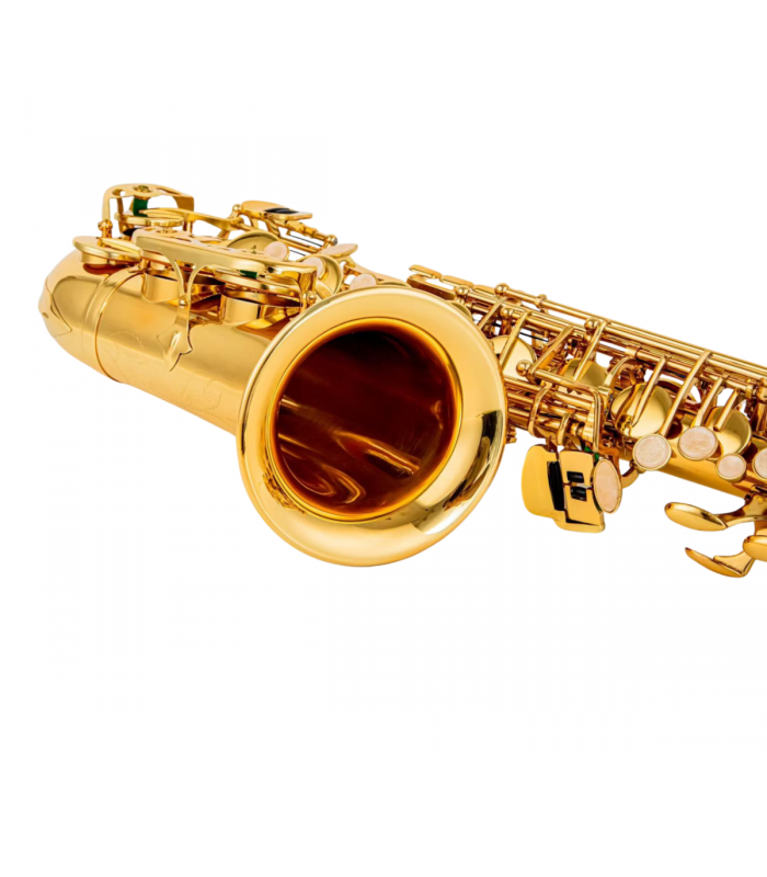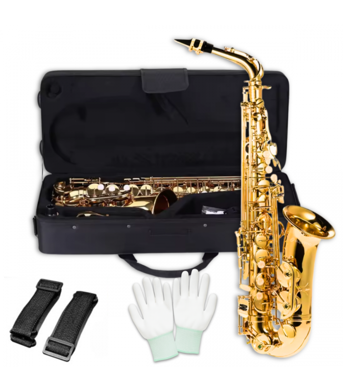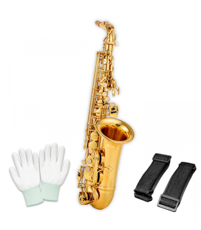 Rozpocznij swoją muzyczną podróż z eleganckim saksofonem altowym Suprimo Alto Saxo, strojonym w E♭ – idealnym wyborem dla uczniów, amatorów i pasjonatów jazzu czy muzyki klasycznej . Złoty lakierowany korpus z mosiądzu nie tylko przyciąga wzrok, ale też gwarantuje ciepłe i głębokie brzmienie Ergonomiczna budowa w stylu klap 802 zapewnia komfort gry nawet podczas długich prób i koncertów. Dzięki skórzanym klapom i przyciskom z masy perłowej, instrument prezentuje się wyjątkowo i brzmi profesjonalnie