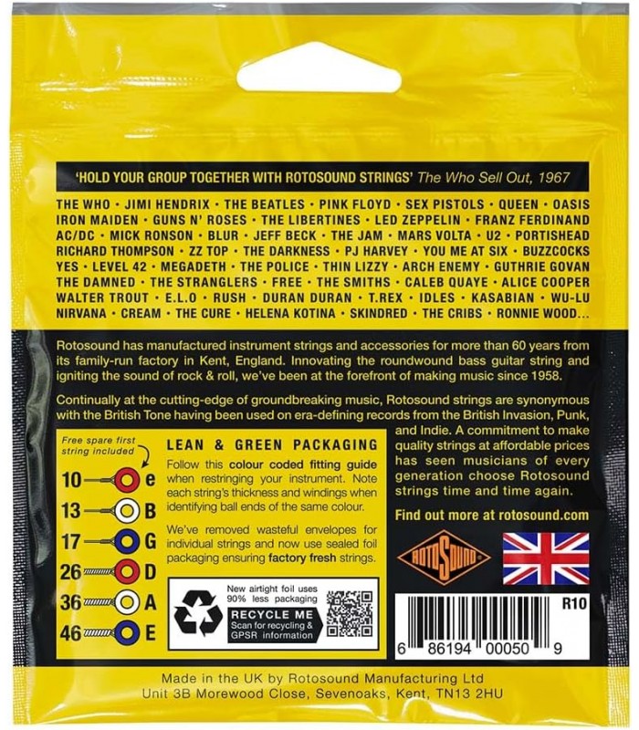 Rewelacyjne struny do gitary brytyjskiej firmy RotoSound. Strun z logo Rotosound używali niegdyś m.in. muzycy zespołów The Jimi Hendrix Experience, The Beatles, Pink Floyd, The Who. Na liście współczesnych użytkowników „ROTO” można znaleźć takie nazwiska jak: Bob Geldof, Billy Sheehan, Steve Harris (Iron Maiden), John Paul Jones (Led Zeppelin), JJ Burnel (The Stranglers), Duff McKagan (Velvet Revolver), Geddy Lee (Rush), Doug Wimbish, a z Polski – młoda, utalentowana basistka Kinga Głyk.