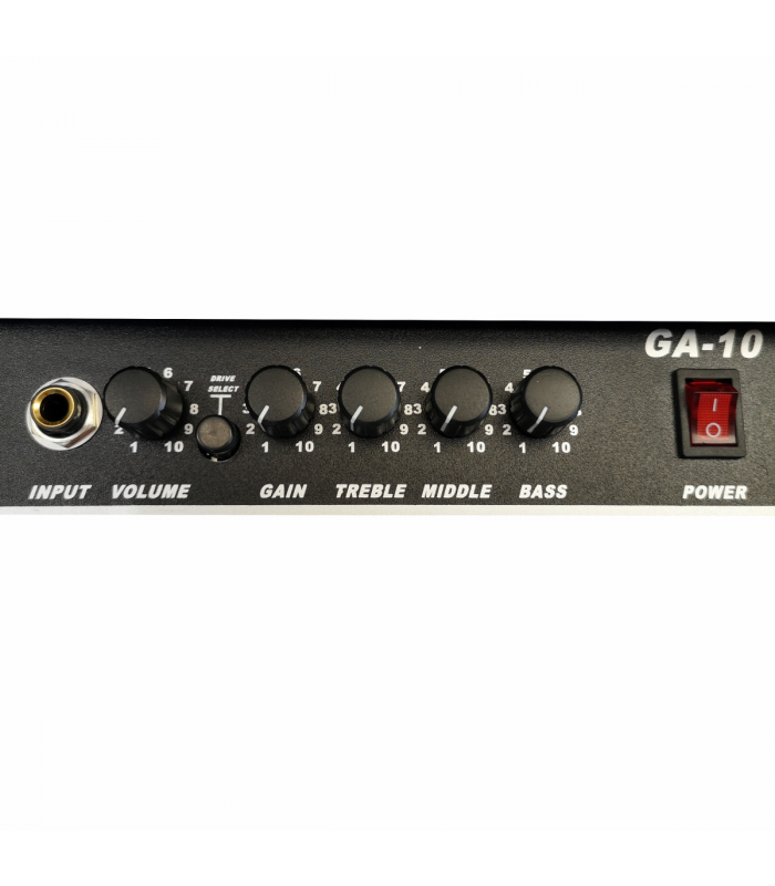Wzmacniacz gitarowy o mocy 10W. Dedykowany jest dla początkujących gitarzystów, świetnie sprawdzi się jako sprzęt do ćwiczeń. To najlepszy wybór, jeżeli szukasz małego wzmacniacza do warunków domowych, oczekując profesjonalnego brzmienia, które pozwoli usłyszeć wszystkie detale podczas ćwiczeń. W GA-10 znajduje się wzmacniacz instrumentalny o czystym kanale i neutralnej charakterystyce, z wbudowanym trójpasmowym korektorem Bass/Middle/Treble, wyposażonym w efekt DRIVER